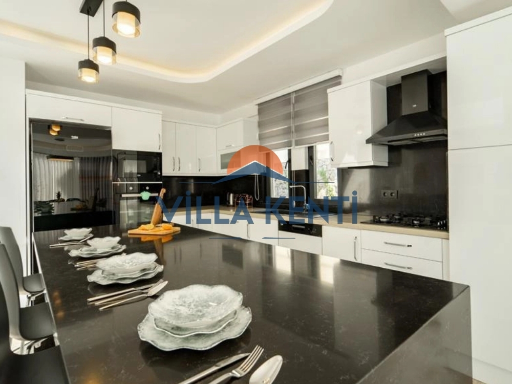• Modern İç Mekan: Geniş aileler için tasarlanmış yüksek tavanlı salon ve tam donanımlı modern Amerikan mutfak ile ev konforunu lüksle birleştiriyoruz.
