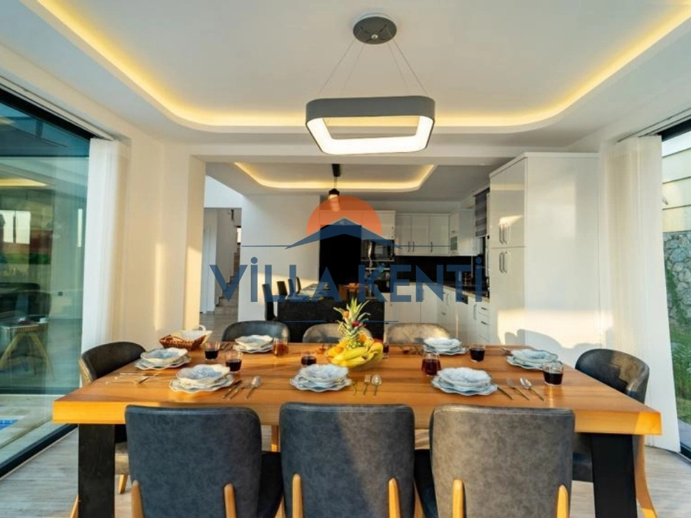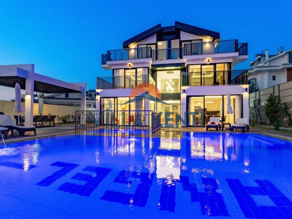 Fethiye’nin dünyaca ünlü turizm ve eğlence merkezi Hisarönü bölgesinde konumlanan villamız, modern mimarisi ve geniş konaklama kapasitesiyle kalabalık aileler ve arkadaş grupları için lüksü standart hale getiriyor. Hem bölgenin enerjisine bir adım mesafede olup hem de villanızın sınırları içerisinde tam bir sükunet ve mahremiyet vadediyoruz.