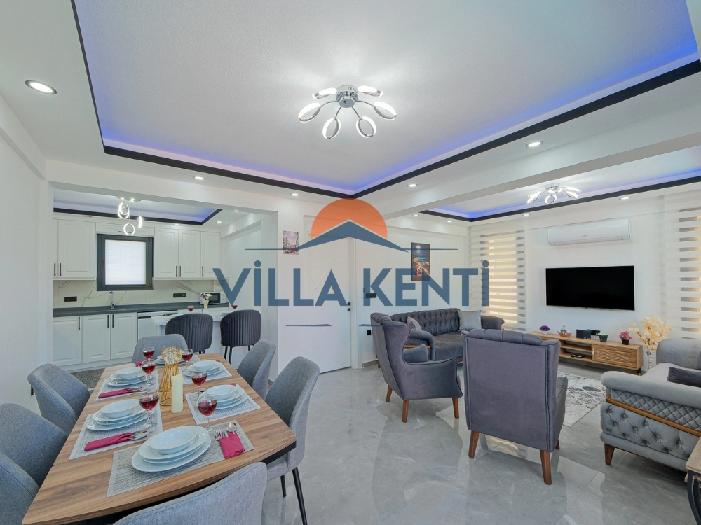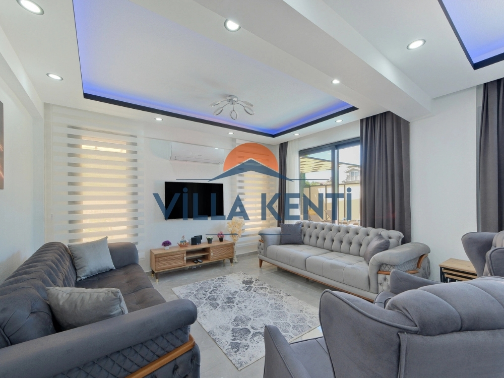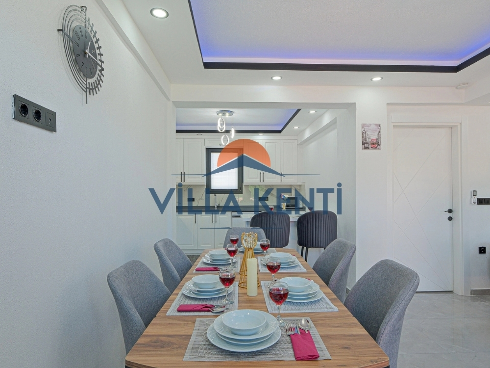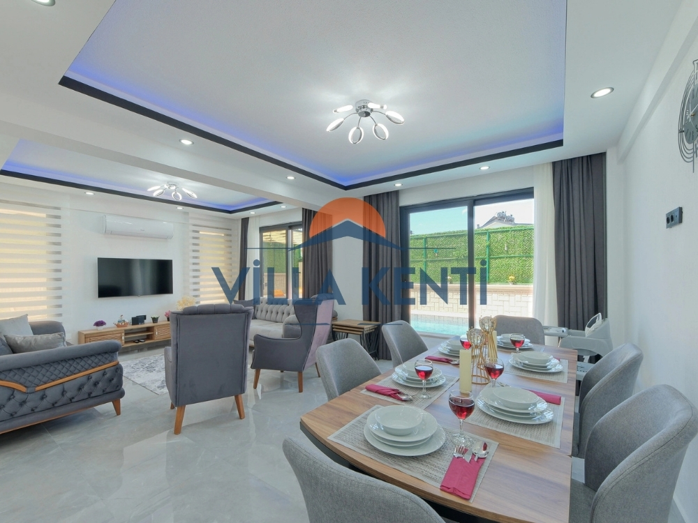 * Mutfak ve Salon: Tam donanımlı modern Amerikan mutfak ve doğrudan havuz terasına açılan, gün ışığı alan geniş bir salon.
