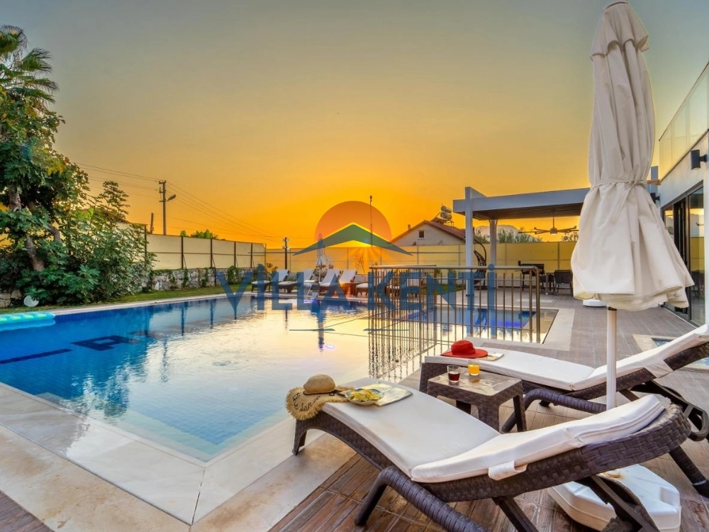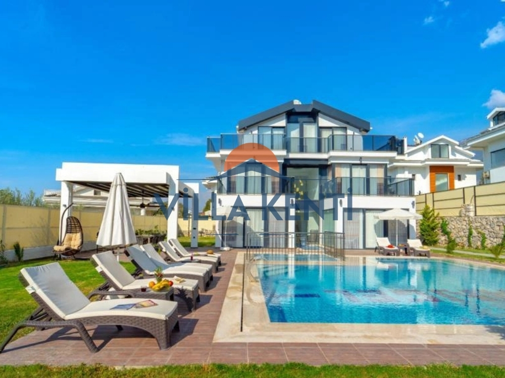 Fethiye’nin dünyaca ünlü turizm ve eğlence merkezi Hisarönü bölgesinde konumlanan villamız, modern mimarisi ve geniş konaklama kapasitesiyle kalabalık aileler ve arkadaş grupları için lüksü standart hale getiriyor. Hem bölgenin enerjisine bir adım mesafede olup hem de villanızın sınırları içerisinde tam bir sükunet ve mahremiyet vadediyoruz.