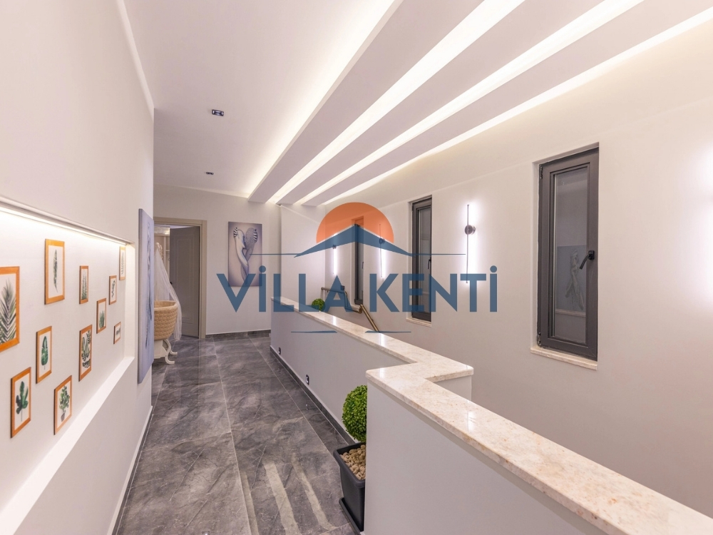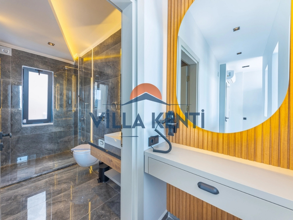 * Üst Katlar: Akdenizʼin masmavi sularına açılan balkonlarıyla diğer yatak odalarımız yer almaktadır. Ana süit odamızda tatilinize keyif katacak küvet, sauna ve hamam konseptli banyo tasarımı mevcuttur.