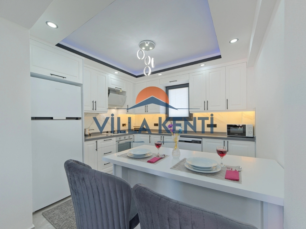 * Mutfak ve Salon: Tam donanımlı modern Amerikan mutfak ve doğrudan havuz terasına açılan, gün ışığı alan geniş bir salon.