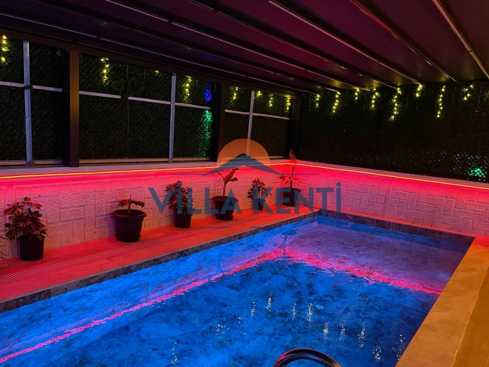 * Otomatik Tente (Pergule) Sistemi: Havuzun üzeri otomatik kumandalı tente sistemi ile tamamen kapatılabilir. Bu özellik, rüzgarlı veya yağışlı havalarda dahi havuz keyfinizin bölünmesini engeller.